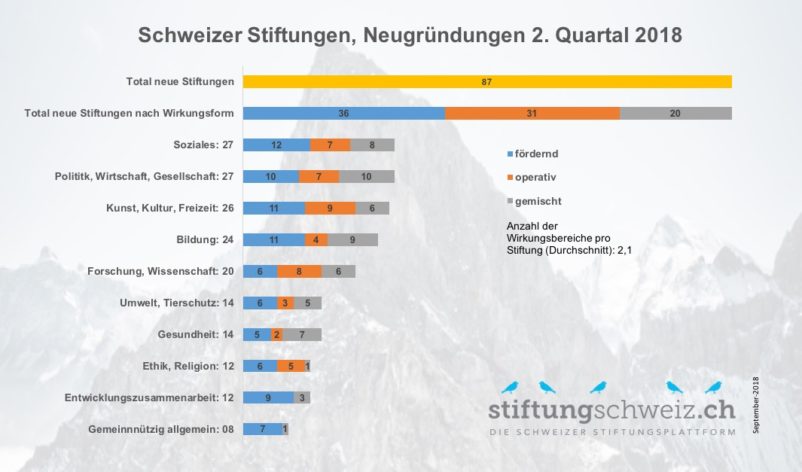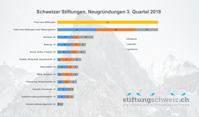 Im 3. Quartal kamen weitere 67 neue Stiftungen in unsere Plattform. Diesmal sind es gleichviel operative wie fördernde (26). Weitere 15 neue Stiftungen sind gemischt tätig. Erfasst wurden dabei die sog. klassischen gemeinnützigen Stiftungen, nicht jedoch z.B. die Wohlfahrtsstiftungen und Firmenstiftungen.