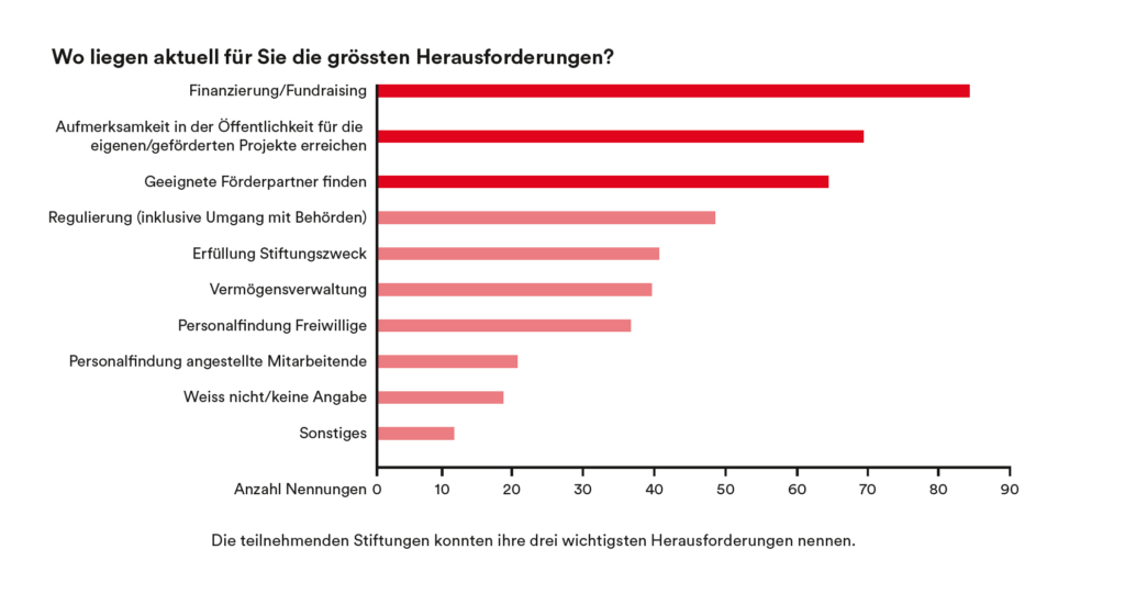 Eine Zunahme dieser Aktivitäten darf erwartet werden. Denn beim Fundraising nennen viele operative Stiftungen den intensiver werdenden Wettbewerb als grosse Herausforderung. Wahrgenommen zu werden, ist unabdingbar. Zahlreiche Stiftungen geben allerdings auch einen Mangel an Zeit an. «Dies lässt darauf schliessen, dass der Ressourcenaufwand zunehmend eine Herausforderung für Stiftungen ist.»