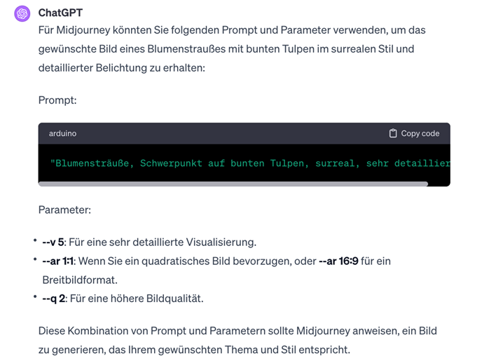In addition to the description of the desired content, the so-called prompt, Midjourney also gives you access to a variety of settings, parameters and additional functions to get the desired image exactly as you want it. The more clearly you tell the AI what the image should look like, the better results you will get.