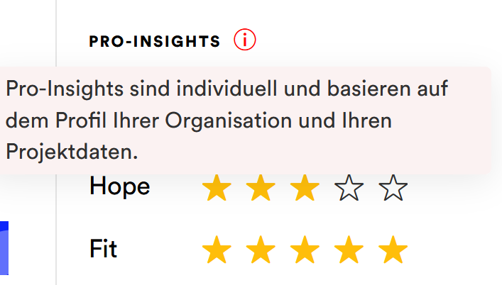 This is precisely where the new Fit & Hope function, which is part of the new Pro-Insights, comes in. The relaunch as Spheriq takes matching to a new level. In addition to the existing profile information, two additional details now provide quick orientation: