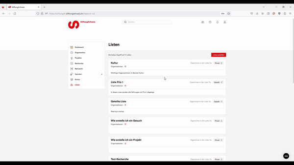 With the release, we have completely revamped the lists and given them a new home of their own. Now you can access the lists via a separate menu item and they will be opened on a separate page. Any list you create can now be shared or kept private. You can comment on, tag and prioritize the saved organizations. In the activity history (Pro level and higher), you are informed when organizations make changes and thus stay up to date.