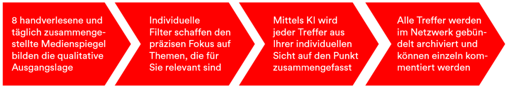 The new media service from Spheriq gives you a quick and targeted overview. The service combines eight high-quality media reviews of the international quality press with the latest AI technology. We bet you’ve never experienced media monitoring in such a personalized and targeted way.
