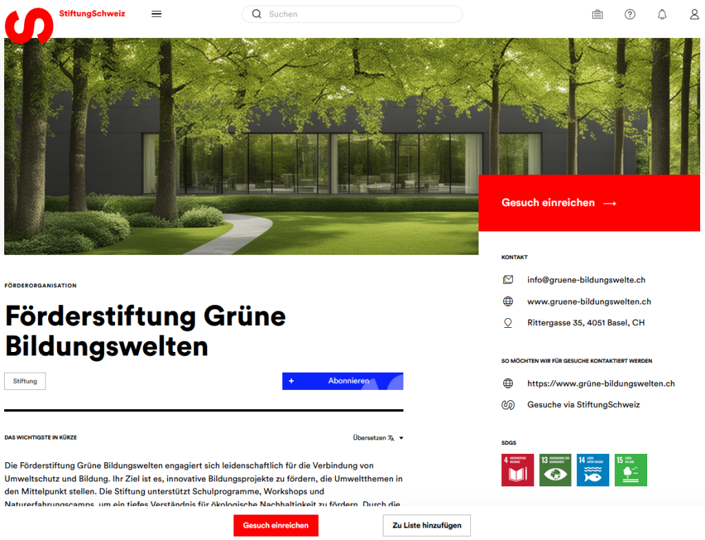 Wie eingangs erwähnt basieren die ersten zwei Teile jedes Gesuchs auf dem Organisations- und Projektporträt der gesuchsstellenden Organisation. Wenn Sie als Nonprofit noch keine Organisation verwalten oder kein Projekt erstellt haben, müssen Sie das zuerst machen. Ihre Organisation und Ihr Projekt müssen beide auf der Plattform veröffentlicht sein, damit Sie ein Gesuch senden können. Ihr Projekt können Sie auch im Privatmodus veröffentlichen, wenn Sie es nur mit bestimmten Förderorganisationen und nicht mit allen Organisationen auf spheriq.ch teilen möchten.