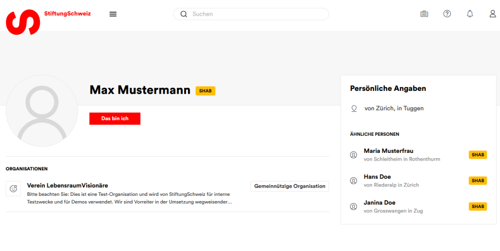 Das SHAB-Profil eines Stiftungsratsmitglieds weist alle zentralen Informationen über die Person und deren Organisation(en) auf. Diese Informationen sind alle öffentlich zugänglich auf der Spheriq-Plattform. Mit der Suchfunktion können Nutzer:innen der Plattform ganz einfach nach einer bestimmten Person suchen und das jeweilige SHAB-Profil auf Spheriq einsehen.