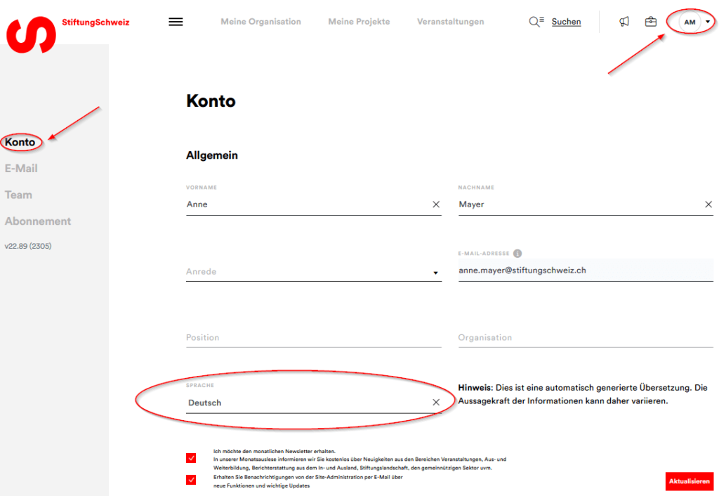 Mehrsprachigkeit ist gerade in der Schweiz unabdingbar. Als Abonnent*in können Sie in Ihren Kontoeinstellungen selber wählen, ob Sie unsere Plattform in Deutsch, Englisch, Französisch, Italienisch oder Spanisch nutzen möchten.