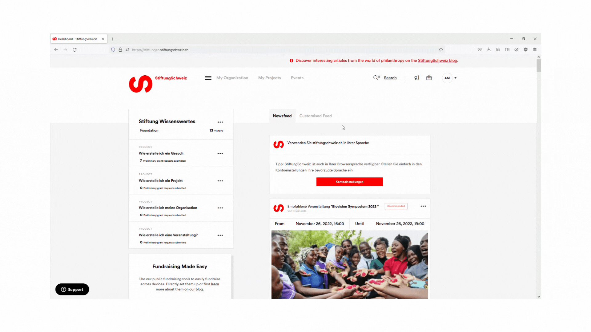 Dank unseren neuen Funktionen im Oktober steht Ihrem Fundraising-Jahresendspurt nichts mehr im Wege. Mit dem neu gestalteten Spendenporträt bringen Sie Spender:innen Ihre Organisation oder Ihr Projekt noch näher und können diese gezielt ansprechen. Die verbesserte Übersetzung hilft Ihnen dabei, sich auf unserer Plattform zurecht zu finden und alle Förderporträts zu verstehen – egal ob Sie deutsch, französisch oder englisch sprechen.