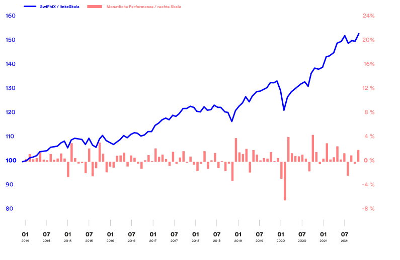 Die Wertschriftenportfolios der gemeinnützigen Organisationen, die dem Performance-Index SwiPhiX zugrunde liegen, erlebten im Dezember einen veritablen Jahresendspurt, welcher die Portfoliowerte um durchschnittlich 2 % ansteigen liess. Daraus ergab sich für den SwiPhiX ein neues Allzeithoch bei 153 Punkten (1.1.2014 = 100) und eine stattliche Jahresperformance 2021 von 9,5 %.
