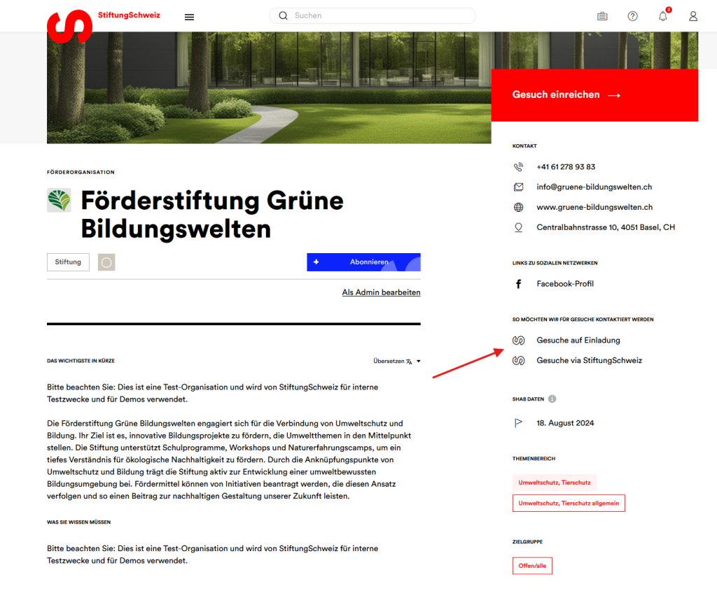 Gezielter Weg zur Antragsstellung mit Gesuchen auf Einladung