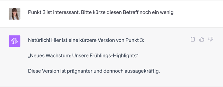 Nachdem Sie auf Enter gedrückt haben, liefert GPT Ihnen eine Betreffzeilen-Variante.