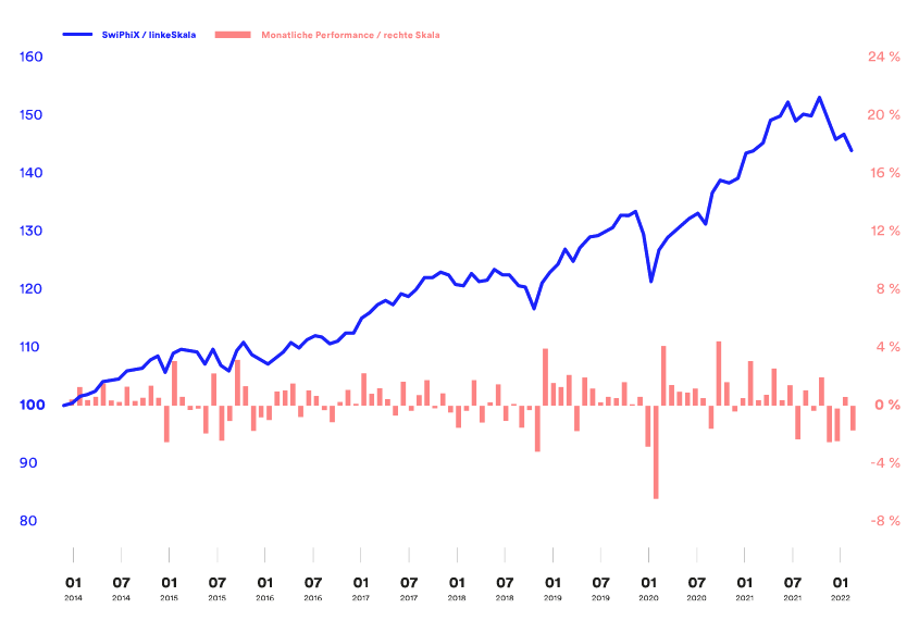 Dritte negative Monatsrendite 2022 für den Performance-Index SwiPhiX