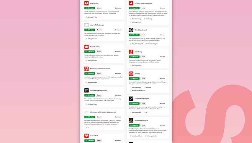 Spheriq will dieses Netz mit dem neuen Portal für die Schweizer Philanthropie enger spannen. Die Akteure sollen sich einfacher Informationen beschaffen und in Kontakt treten können. Auf Knopfdruck und unmittelbar zu jeder Zeit.