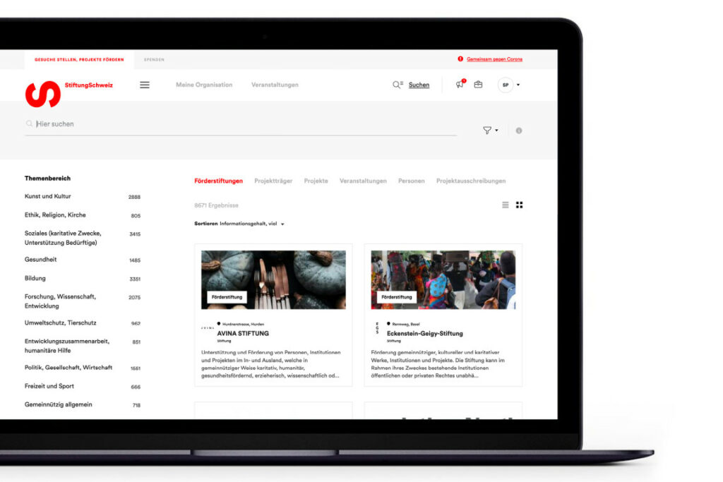 Present your organization and projects on the largest Swiss foundation platform and attract the attention of funding organizations. Search in our extensive foundation directory for suitable funding organizations and quickly find what you are looking for.