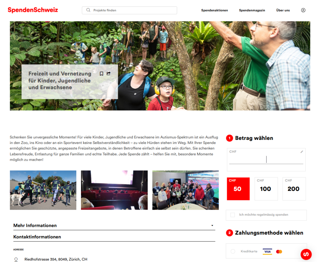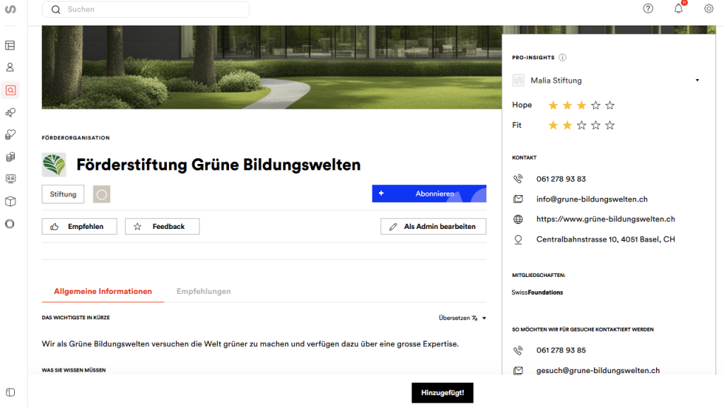 Legen Sie ein Profil im grössten Verzeichnis für Philanthropie an und präsentieren Sie Ihre gemeinnützige Organisation einem grossen Publikum an potenziellen Förderern und Unterstützer:innen. Geben Sie Einblicke in Ihre Ziele, Grundsätze und Projekte – und schaffen Sie damit Vertrauen bei allen, die Gutes bewirken möchten.